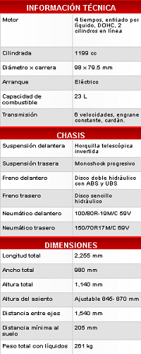 El corazón de esta robusta motocicleta de aventura; es un motor DOHC de 4 tiempos que con sus dos cilindros en línea y refrigeración líquida la hacen superior a su competencia. Gracias a su exclusivo intervalo de explosión de 270º entre cilindros es capaz de entregar una potencia extrema y un poderoso torque disponible de manera inmediata cada vez que se abre el acelerador.